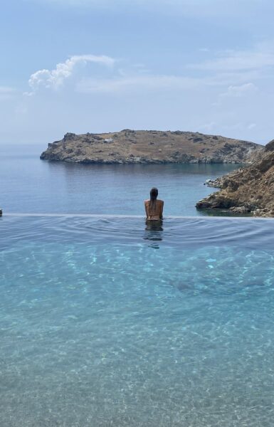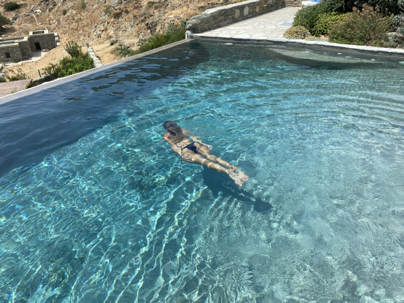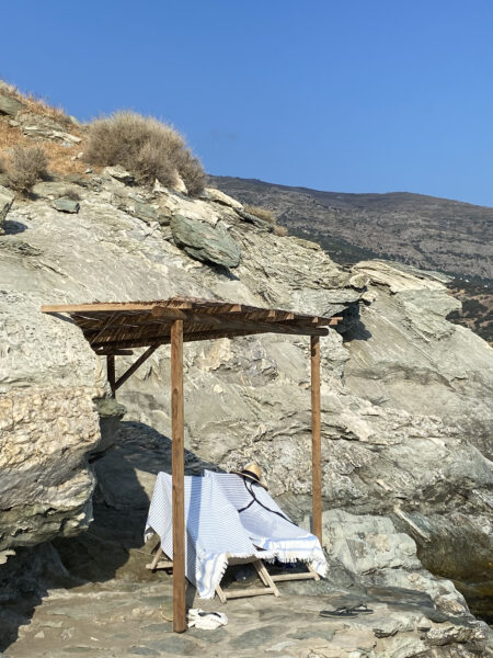 Dalla nostra stanza al mare ci separa un cammino. Un breve viaggio in cui si oltrepassa il giardino, si costeggia il recinto dove una famiglia di caprette saltella e si fermano a guardarci fisso. Poi giù verso una discesa in paradiso, in cui non ci fermiamo a riprendere fiato, ma per non perdere nessun verso di quella bellezza. Ogni giorno, dopo aver gustato quel banchetto delizioso che è la colazione secondo Allegra, prendiamo un asciugamano, un frutto, un libro e ci sediamo su uno scoglio, a far provviste di calore e azzurro per l’inverno.