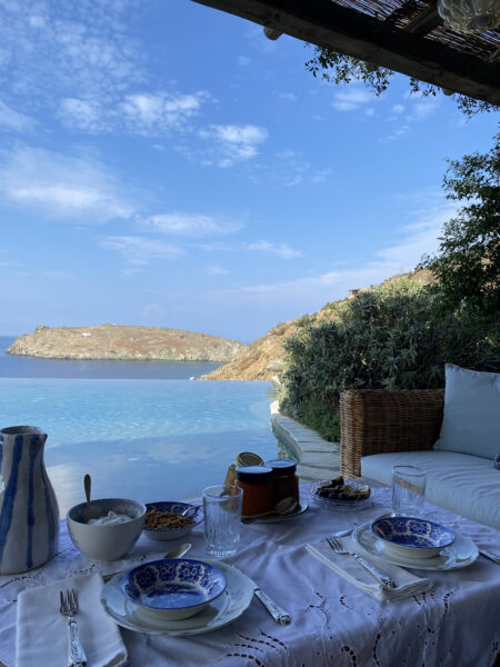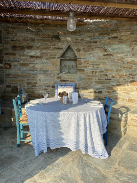 Andros, Cicladi. 405 chilometri di scisti cristallini, rivoli, vigneti, oliveti e agrumeti, monasteri e sparuti villaggi. A condurci qui è una storia che inizia nell’Adriatico, a Pescara, dove Allegra è nata e cresciuta, circondata dai sapori delle antiche ricette abruzzesi e i profumi delle erbe locali con cui il nonno Amedeo, agli inizi del secolo scorso, creò l’Aurum, un liquore divenuto celebre. Grazie a suo padre, Allegra varca la soglia delle cucine dei grandi chef e frequenta con lui corsi di cucina. Seguono gli studi in fotografia alla Central Saint Martins e di grafica pubblicitaria a Bruxelles, e una carriera come gastronoma-fotografa. Ad Andros capita quasi per caso e se ne innamora e la elegge a progetto di vita, costruendo un approdo sul versante meridionale dell’isola. Mèlisses prende il nome dalle api operose che ronzano tra i cespugli sulle coste dell’arcipelago.